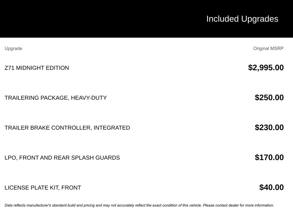 • Z71 MIDNIGHT EDITION package with black bowties, body-color grille, spray-on bedliner, and 17-inch gloss-black aluminum wheels