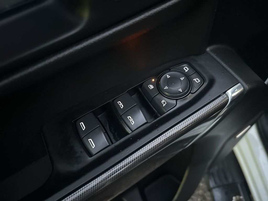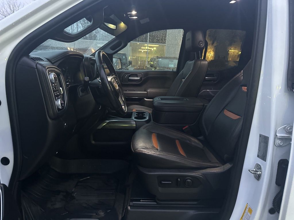 The exterior of this Sierra 1500 AT4 exudes a bold and confident presence, with its striking white paint and sleek, muscular lines. The black rectangular assist steps and body-color surround grille add to the rugged aesthetic, while the LED cargo area lighting and spray-on bed liner ensure both style and functionality.