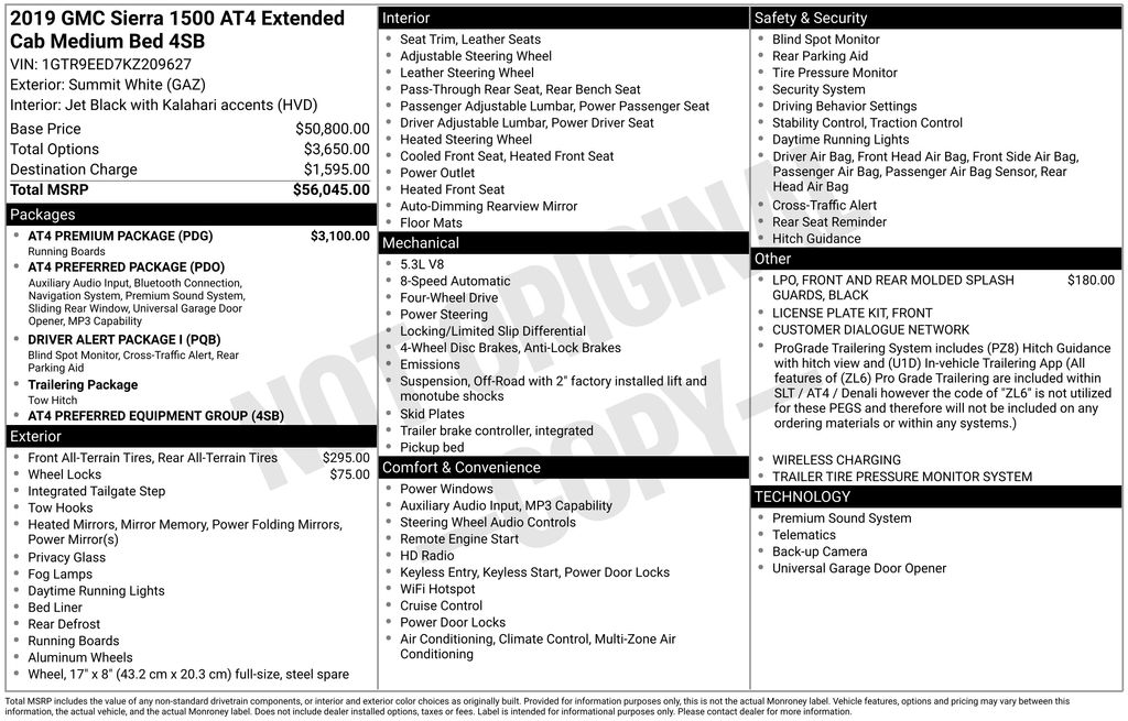 Experience the ultimate in power, capability, and style with this 2019 GMC Sierra 1500 AT4. This rugged and refined pickup is ready to take on any adventure, whether it's conquering the great outdoors or navigating the urban jungle.