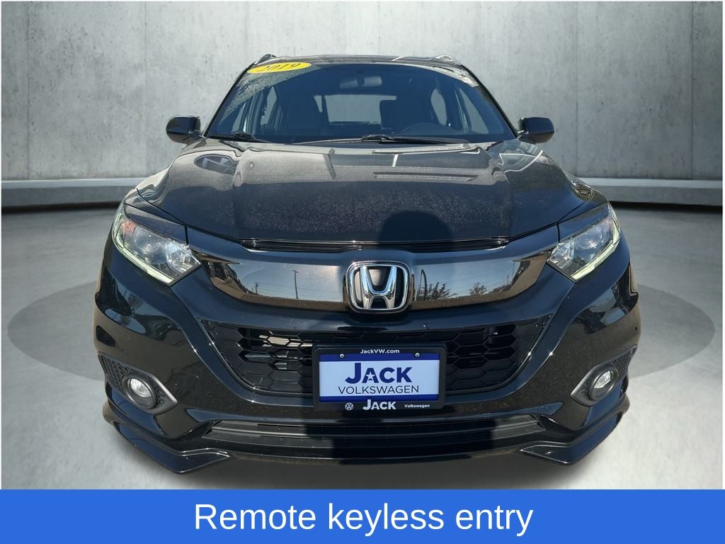 Discover the perfect blend of style, versatility, and performance with this 2019 Honda HR-V Sport. This sleek and sophisticated crossover SUV is the ideal companion for your adventures, whether you're navigating the city streets or exploring the great outdoors.Boasting a striking black exterior, this HR-V Sport is equipped with a host of impressive features that will elevate your driving experience. Enjoy the convenience of Apple CarPlay and Android Auto, allowing you to seamlessly integrate your smartphone with the vehicle's infotainment system. Stay connected and entertained on the go with the premium audio system, complete with 6 speakers and a radio data system.• Apple CarPlay/Android Auto• Exterior Parking Camera Rear• Cloth Seat Trim• Steering wheel mounted audio controls• Front fog lights• 18" Machine-Finished Alloy WheelsThe HR-V Sport's advanced all-wheel-drive system provides exceptional traction and control, ensuring a confident and secure ride in any weather conditions. Powered by a 1.8L I4 SOHC 16V i-VTEC engine, this crossover delivers an impressive balance of efficiency and performance, with an EPA-estimated 26 city/31 highway MPG.Slip into the comfortable and supportive cloth seats, where you'll enjoy the convenience of a front center armrest and split-folding rear seats. The spacious interior offers ample room for your passengers and cargo, making this HR-V the perfect companion for your daily commute or weekend getaways.Safety is of the utmost importance, and this HR-V Sport is equipped with a comprehensive suite of advanced safety features. Enjoy the peace of mind of dual front impact airbags, dual front side impact airbags, and an emergency communication system, all working together to protect you and your loved ones.Experience the perfect blend of style, capability, and technology with this 2019 Honda HR-V Sport. Visit our showroom today and let our knowledgeable sales team guide you through all the impressive features this crossover has to offer. Don't miss your chance to make this exceptional vehicle your own.
