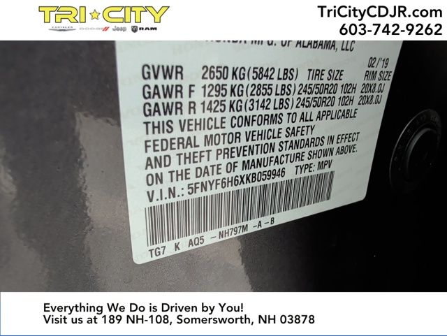 Used 2019 Honda Pilot Touring