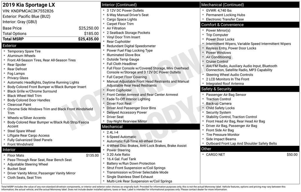 Don't miss your chance to own this exceptional 2019 Kia Sportage LX. Visit our showroom today and let us demonstrate the true capabilities of this remarkable SUV. We're confident you'll be impressed by its performance, features, and value, and we look forward to helping you drive away in the vehicle of your dreams.