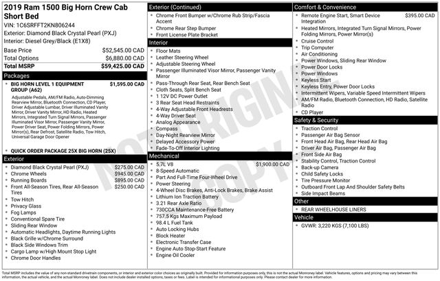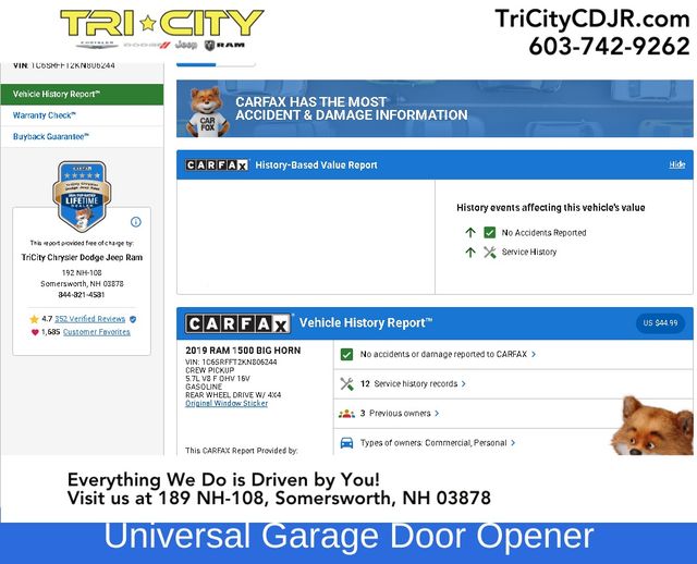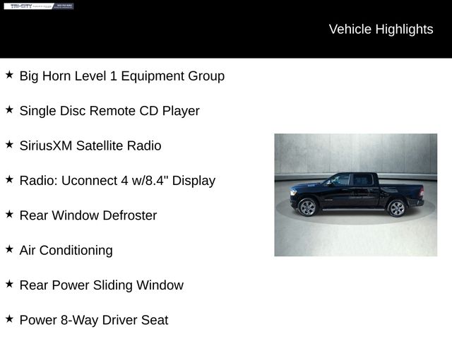 Fully serviced & Ready To Drive Home Today CALL NOW BEFORE ITS GONE!! (603) 207-8583Brakes checkedCabin air filter replaced/cleanedDrivability/performance checkedFour tires balancedFront brake pads replacedFront brake rotor(s) replacedElevate your driving experience with this stunning 2019 Ram 1500 Big Horn/Lone Star. This powerful and versatile truck is the perfect companion for your adventures, offering a remarkable blend of performance, capability, and comfort.• Big Horn Level 1 Equipment Group• Radio: Uconnect 4 w/8.4" Display• Single Disc Remote CD Player• SiriusXM Satellite Radio• Air Conditioning• Rear Window Defroster• Power 8-Way Driver Seat• Rear Power Sliding Window• Universal Garage Door Opener• Traction control• 4-Wheel Disc Brakes• Low tire pressure warning• Remote Start System• Electronic Stability Control• ParkView Rear Back-Up CameraBoasting a HEMI 5.7L V8 engine and 4WD, this Ram 1500 delivers exceptional power and performance, with an impressive 15 city/21 highway MPG rating. The sleek black exterior exudes confidence, while the well-appointed interior offers a wealth of premium features to enhance your driving experience.Imagine the freedom of commanding the road in this versatile and capable truck. The Big Horn/Lone Star trim level provides a wealth of advanced technology and convenience features, from the intuitive Uconnect infotainment system to the powerful remote start system, ensuring your every need is met.Whether you're tackling tough terrain, hauling heavy loads, or simply enjoying the open road, this 2019 Ram 1500 is ready to take on the challenge. Its rugged construction and impressive towing capacity make it a true workhorse, while the thoughtful design and attention to detail ensure a comfortable and refined ride.At our dealership, we pride ourselves on providing our customers with exceptional service and a commitment to their satisfaction. We understand that finding the perfect vehicle is a personal journey, and we're here to guide you every step of the way.Don't miss your opportunity to experience the power and versatility of this remarkable 2019 Ram 1500 Big Horn/Lone Star. Visit our showroom today and let us demonstrate why this truck is the perfect fit for your lifestyle.