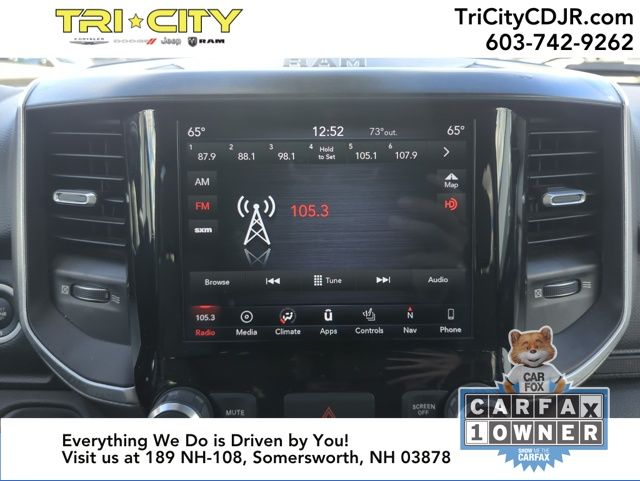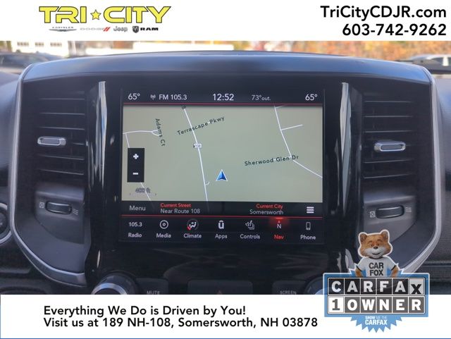 Step inside and discover the comfort and convenience that this truck has to offer. The spacious cabin, with its premium cloth upholstery and power-adjustable driver's seat, provides a relaxing and supportive environment for long drives. The Uconnect 4C Nav system with an 8.4-inch touchscreen display keeps you connected and entertained, while the remote start system and heated steering wheel add an extra layer of comfort on chilly mornings.