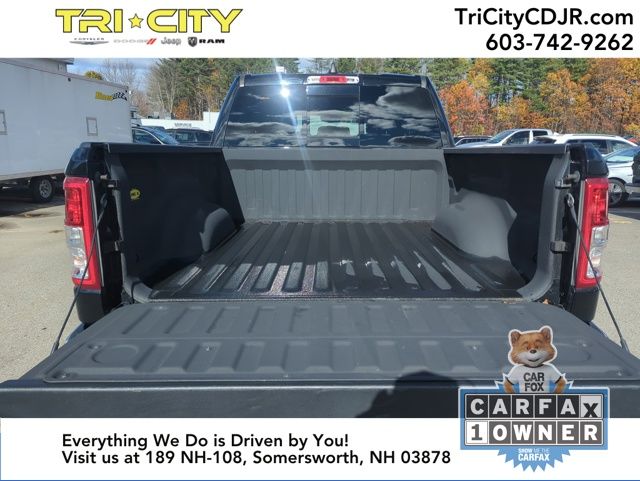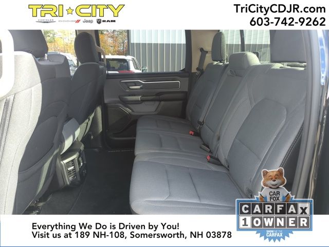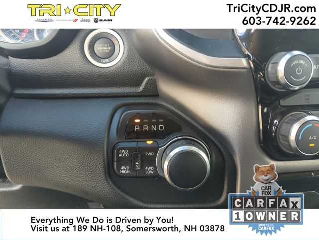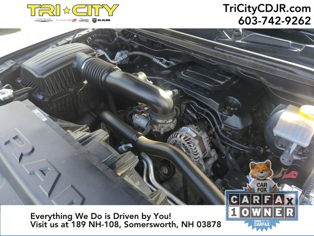 But this Ram 1500 isn't just about creature comforts – it's also built to work hard. The 5.7L HEMI V8 engine delivers impressive power and performance, while the 4WD system ensures you can tackle any terrain with confidence. The class-IV receiver hitch and integrated trailer brake controller make towing a breeze, whether you're hauling your boat, camper, or heavy-duty equipment.