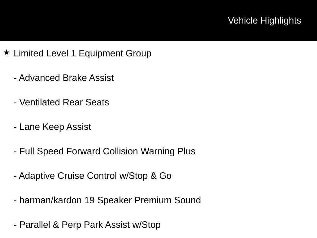 • Limited Level 1 Equipment Group with advanced safety and convenience technologies