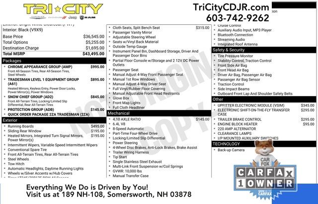 This Ram 2500 is packed with features that make it a workhorse you can rely on. The Chrome Appearance Group adds a touch of style with a bright front and rear bumper, chrome grille surround, and 18-inch chrome-clad steel wheels. The Tradesman Level 1 Equipment Group provides conveniences like power windows, remote keyless entry, and upgraded door trim panels.