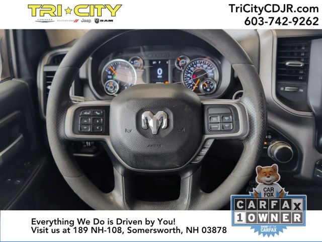 Stepping inside, you'll find a durable 40/20/40 split bench seat in black cloth, providing comfortable seating for you and your crew. The Upfitter Electronic Module (VSIM) allows for easy customization, making this Ram 2500 the perfect canvas to build your ultimate work truck.