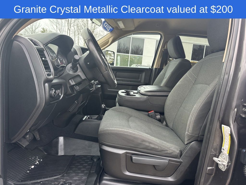 The exterior of this Ram 2500 is dressed in a sleek Granite Crystal Metallic Clearcoat, complemented by chrome accents that give it a bold, confident presence. Step inside and you'll find a spacious and well-appointed cabin, featuring a 40/20/40 split bench seat with front armrest and cupholders, providing both comfort and utility.