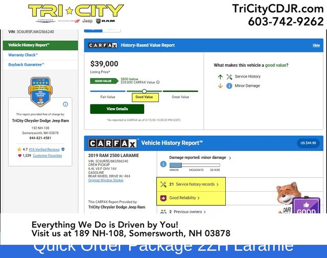 Whether you're tackling tough jobsite tasks or embarking on a rugged outdoor excursion, this 2019 Ram 2500 Laramie is built to handle it all. With its exceptional towing capacity, advanced 4WD capabilities, and premium amenities, this truck is the perfect blend of power, capability, and refinement.