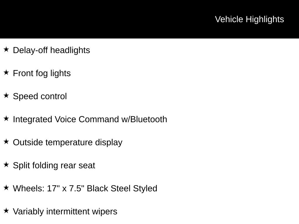 - Wheels: 17" x 7.5" Black Steel Styled