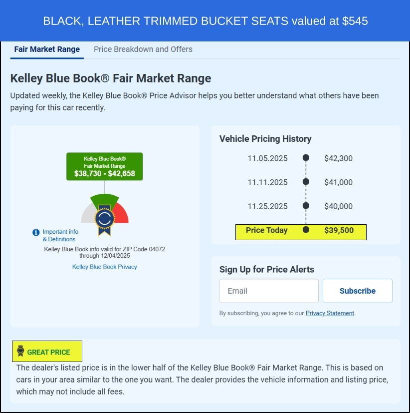 Leather–Trimmed Bucket Seats $545 Value!!