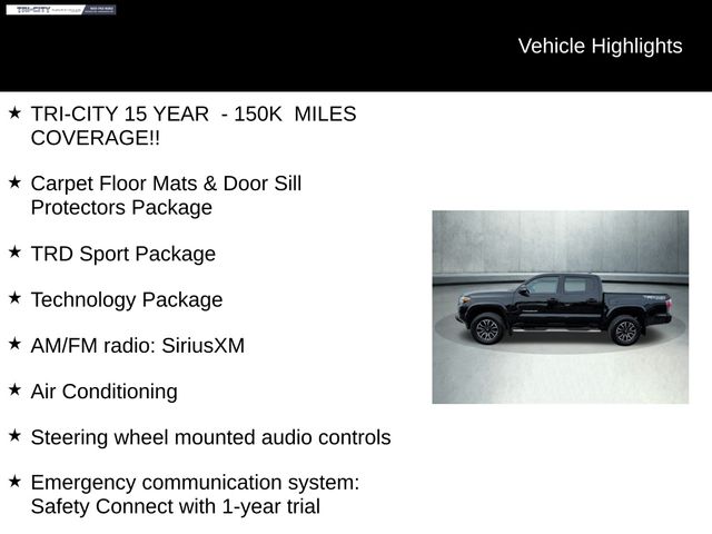 With a striking black exterior, this Tacoma TRD Sport exudes confidence and style. The 17-inch machined alloy wheels, power door mirrors, and Blind Spot Monitor with Rear Cross Traffic Alert add to its rugged good looks and advanced safety features.