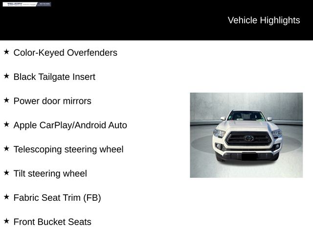 Step inside and you'll be greeted by a host of premium features, including Apple CarPlay and Android Auto for seamless smartphone integration, as well as a range of advanced safety technologies to keep you and your passengers secure on the road. The Tacoma SR5 also boasts a sleek, modern exterior with a bold grille and stylish alloy wheels, ensuring you'll turn heads wherever you go.
