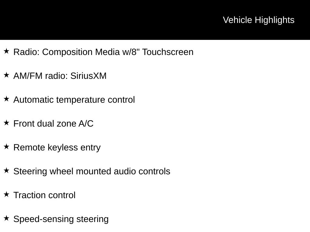 - Composition Media: 8" touchscreen AM/FM/HD Radio™ & CD player w/ USB input,