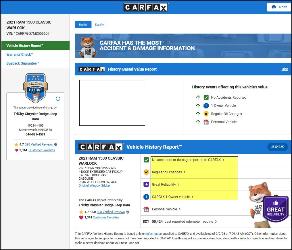 Experience the uncompromising capability and bold style of the 2021 Ram 1500 Classic Warlock. This truck is ready to take on any challenge, whether it's conquering the open road or tackling tough job sites. Schedule a test drive today and discover why the Warlock is the ultimate choice for those who demand more from their pickup.