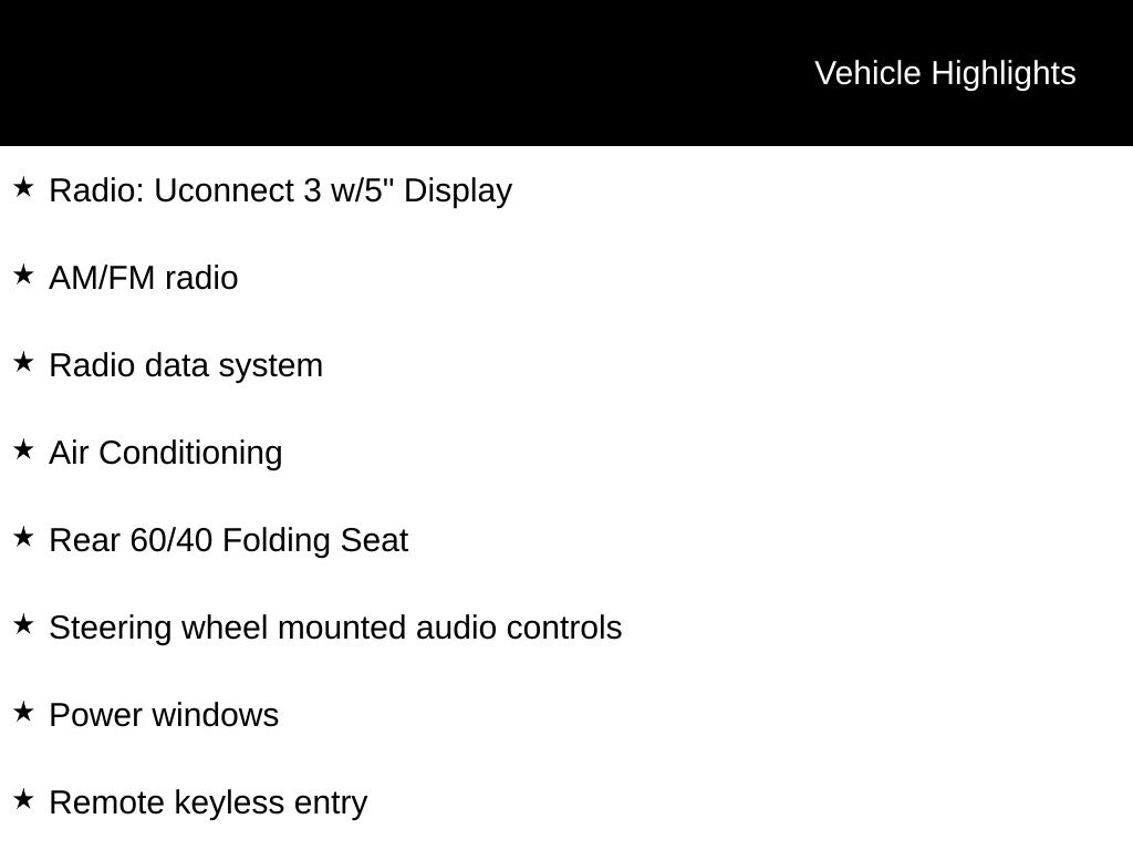 • AM/FM radio, Radio data system, and Uconnect 3 w/5" Display