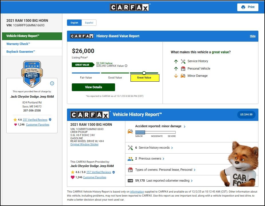 Don't miss your chance to own this exceptional 2021 Ram 1500 Big Horn/Lone Star. Schedule a test drive today and discover the difference for yourself. We look forward to helping you drive away in the truck of your dreams.