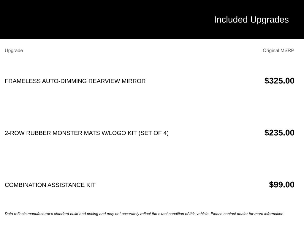 - Frameless Auto-Dimming Rearview Mirror with electronic compass and HomeLink garage door opener