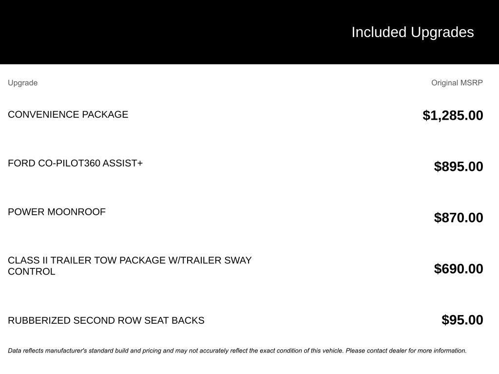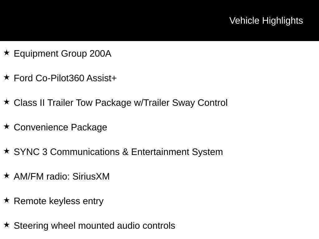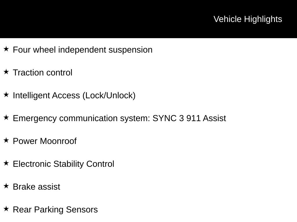 - Ford Co-Pilot360 - Pre-Collision Assist with Automatic Emergency Braking (AEB) forward collision mitigation