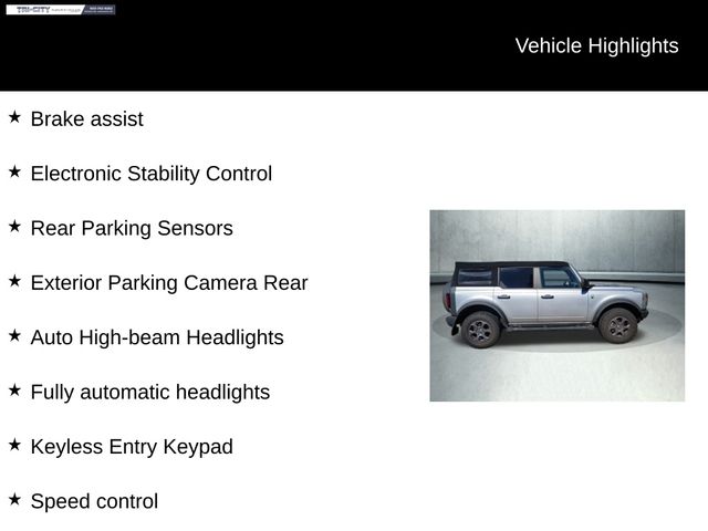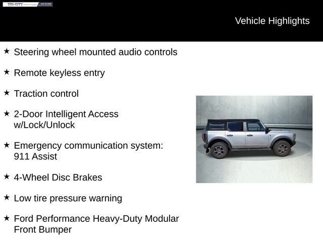 Powered by a 2.3L EcoBoost I-4 engine and equipped with a 10-speed automatic transmission and 4WD, the Bronco Big Bend delivers exceptional performance both on and off the beaten path. With an impressive 20 MPG in the city and 21 MPG on the highway, this SUV offers the perfect balance of power and efficiency.