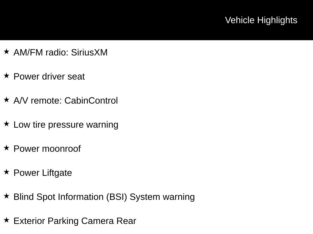 • Power Moonroof, Power Liftgate, and Blind Spot Information (BSI) System