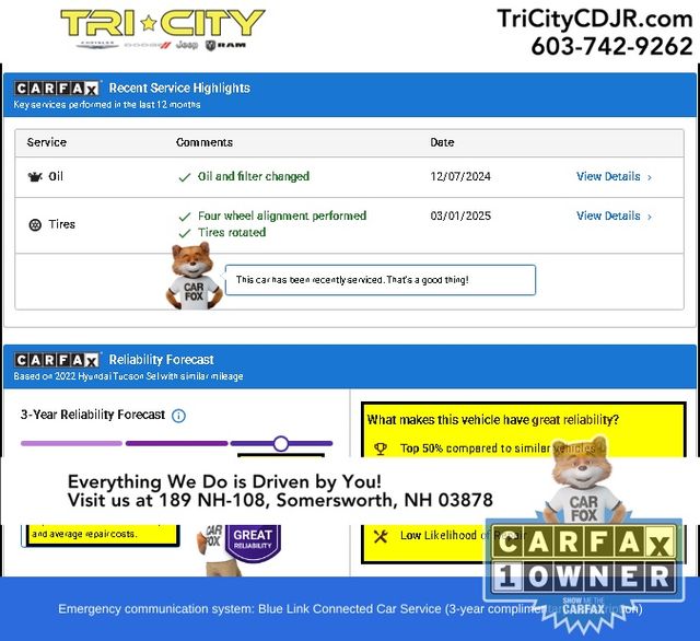 Highlighted by our exclusive TRI-CITY 15 YEAR - 150K MILES COVERAGE, the Tucson SEL is a