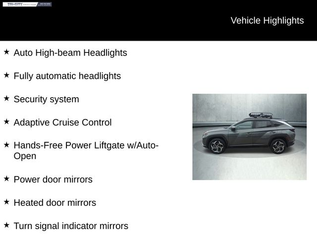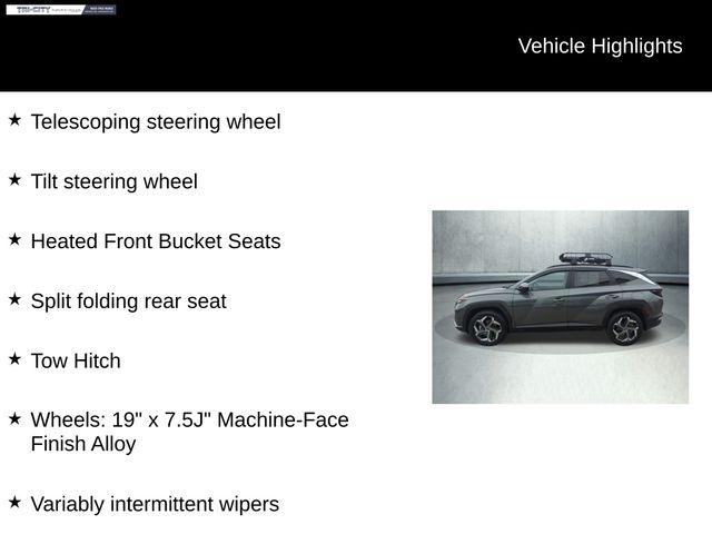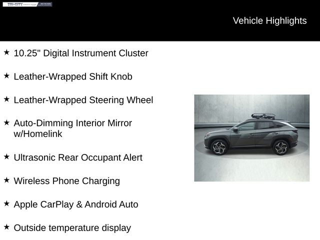 Slip into the driver's seat and be captivated by the Tucson SEL's modern, well-appointed interior. Enjoy the convenience of the Hands-Free Power Liftgate, the clarity of the 10.25" Digital Instrument Cluster, and the seamless integration of Apple CarPlay and Android Auto. Indulge in the comfort of the Heated Front Bucket Seats and the sophisticated ambiance of the Ambient Interior Lighting.
