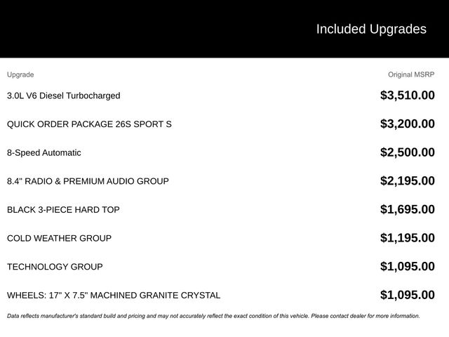 Powered by a robust 3.0L V6 Turbodiesel engine mated to an 8-speed automatic transmission, this Wrangler delivers exceptional performance and efficiency. With 22 city and 29 highway MPG, you can conquer the open road with confidence and fewer stops at the pump.