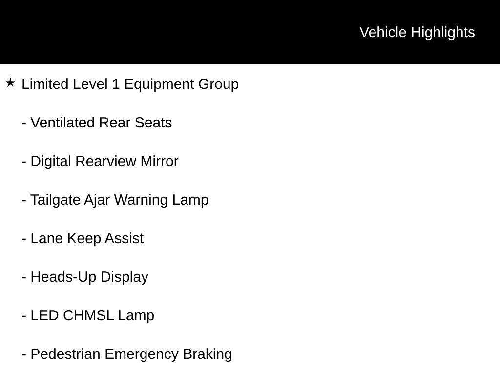 • Limited Level 1 Equipment Group with advanced safety technologies $3,295 Added Value!