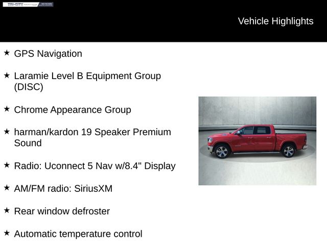 The attention to detail is evident throughout the Laramie's design, from the Chrome Appearance Group that adds a touch of sophistication to the exterior, to the Rear Wheelhouse Liners that protect against the elements. Step inside, and you'll be greeted by the Uconnect 5 Nav system with a stunning 12-inch touchscreen display, offering seamless connectivity and intuitive controls.