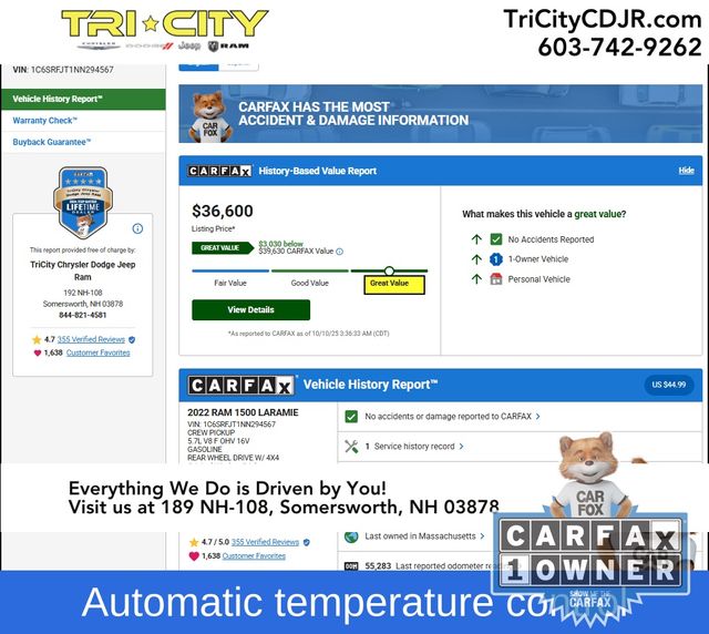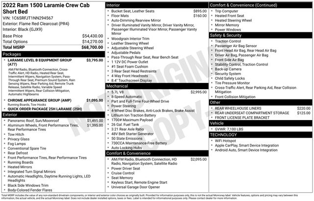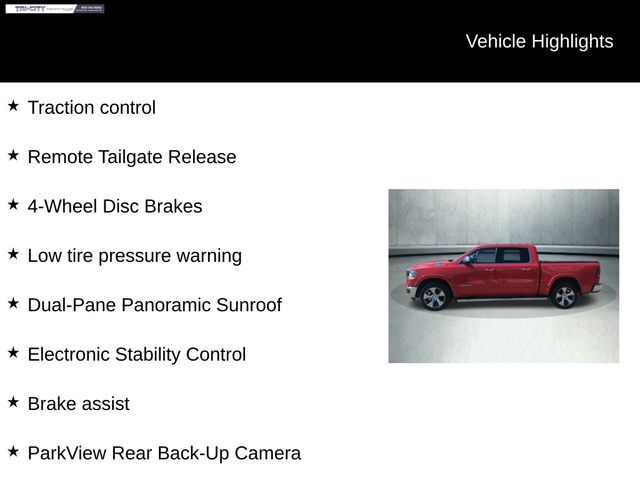 Safety is paramount in the 2022 Ram 1500 Laramie, with features like ParkView Rear Back-Up Camera, Brake Assist, and Electronic Stability Control ensuring you and your passengers are well-protected. The Mopar Front & Rear Rubber Floor Mats provide durable protection for the cabin, making it easy to keep your truck looking its best.