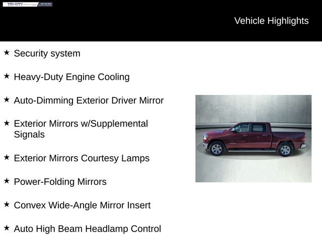 Safety is a top priority, with features like electronic stability control, brake assist, and the ParkView rear backup camera. The Laramie also boasts a heavy-duty engine cooling system, auto-dimming mirrors, and rain-sensitive windshield wipers for added convenience and peace of mind.