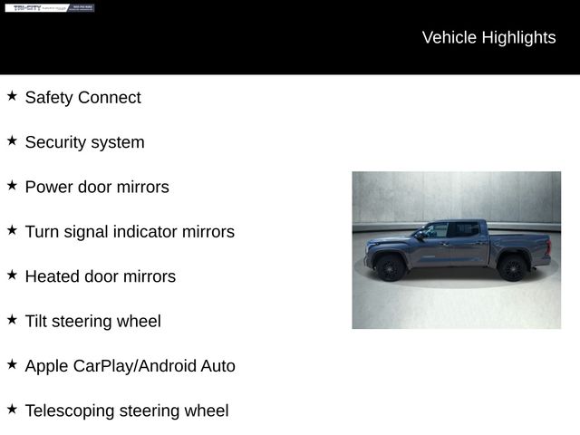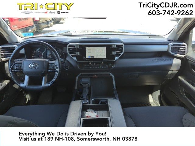 Inside, the Tundra SR5 offers a spacious and well-appointed cabin, designed to keep you comfortable and connected. Enjoy the convenience of features like Apple CarPlay, Android Auto, and a premium audio system, as well as the peace of mind provided by advanced safety technologies like the Emergency Communication System and Blind Spot Monitoring.