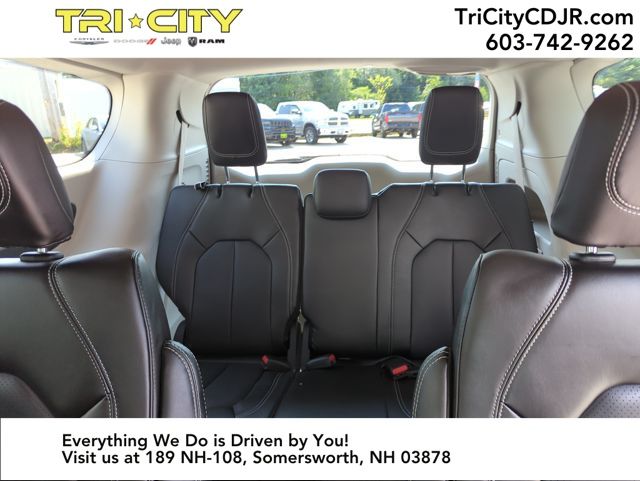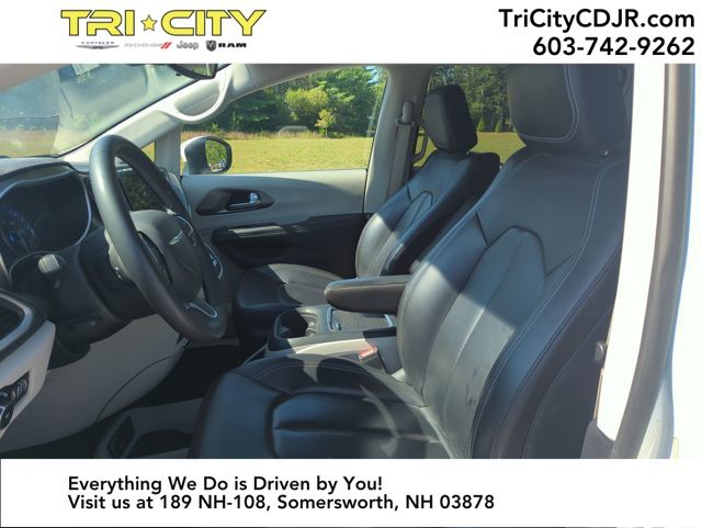 Step inside and experience the epitome of modern luxury. The Pacifica Touring L's spacious and versatile interior is designed to accommodate your every need, from the comfortable Caprice Leatherette Bucket Seats to the convenient USB Host Flip and Heated steering wheel. With ample cargo space and the split-bench 3rd-row seats, you'll have no trouble fitting all your family's essentials.