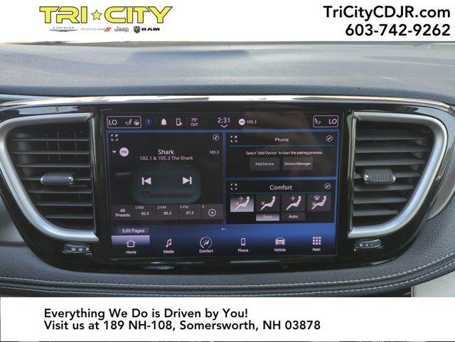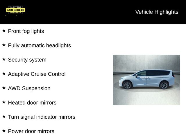 The Pacifica Touring L's advanced safety features provide you and your loved ones with the ultimate peace of mind. From the Adaptive Cruise Control and AWD Suspension to the Front fog lights and Fully automatic headlights, this minivan is designed to keep you and your family safe on the road.