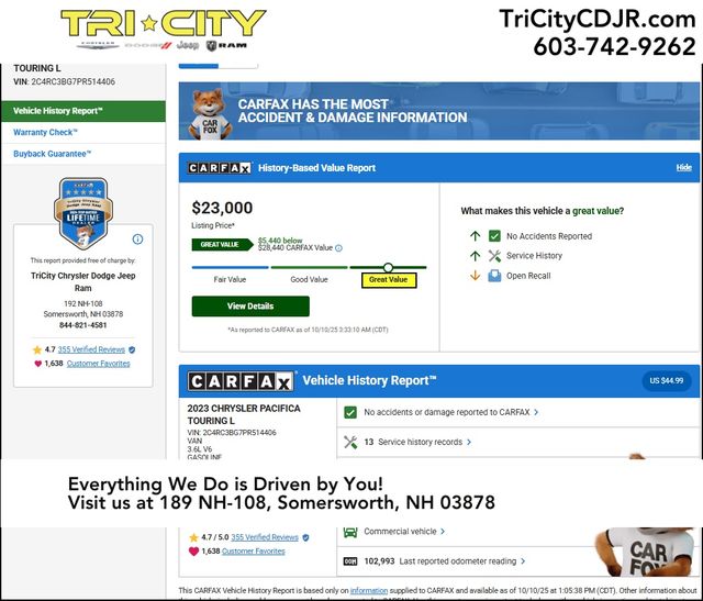 Discover the perfect blend of style, functionality, and performance with the 2023 Chrysler Pacifica Touring L. Visit our showroom today and experience the difference for yourself. We're confident that this exceptional vehicle will exceed your expectations and become the perfect companion for your family's adventures.