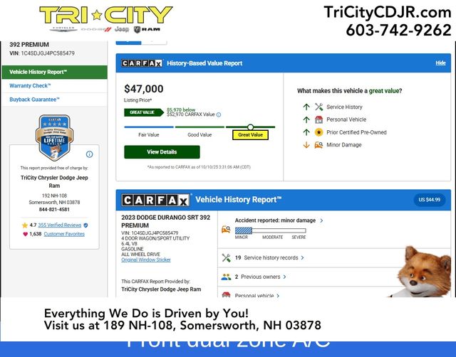 So what are you waiting for? This 2023 Dodge Durango SRT 392 won't be around for long, so call us now at (603) 207-8583 to schedule a test drive and make it yours today!