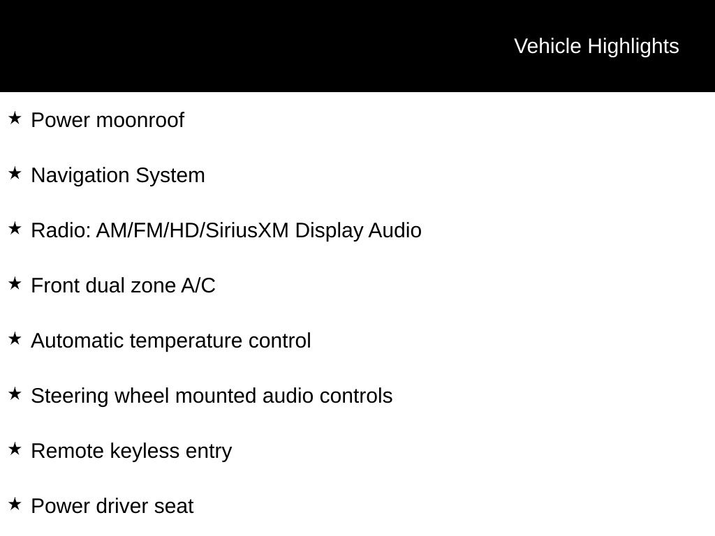 • Radio: AM/FM/HD/SiriusXM Display Audio