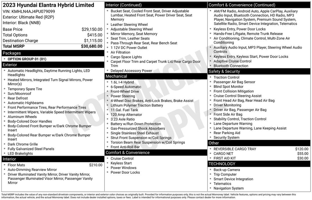 Discover the exceptional 2023 Hyundai Elantra Hybrid Limited, a remarkable blend of style, efficiency, and advanced technology. This captivating sedan boasts a striking Red exterior, complemented by a spacious and well-appointed interior that promises a truly rewarding driving experience.