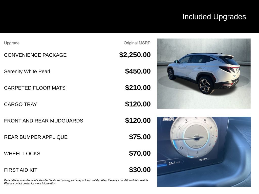 2023 Hyundai Tucson SEL AWD, 10.25" Digital Instrument Cluster, Apple CarPlay & Android Auto, Auto High-beam Headlights, Auto-Dimming Interior Mirror w/Homelink, Convenience Package, Dual Automatic Temperature Control, Electronic Stability Control, H-Tex Seat Trim, Leather-Wrapped Shift Knob, Leather-Wrapped Steering Wheel, LED Interior Lights (Room, Map), Option Group 02, Overhead airbag, Power driver seat, Power Liftgate, Power Sunroof, Radio: AM/FM/HD/SiriusXM Audio System, Steering wheel mounted audio controls, Traction control, Ultrasonic Rear Occupant Alert, Wheels: 19" x 7.5J" Machine-Face Finish Alloy. 23/28 City/Highway MPG CARFAX One-Owner. Clean CARFAX.