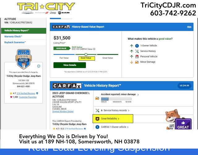 Experience the perfect blend of power, sophistication, and capability in the 2023 Jeep Grand Cherokee L Altitude. Visit our showroom today and let us demonstrate how this exceptional SUV can transform your driving experience.