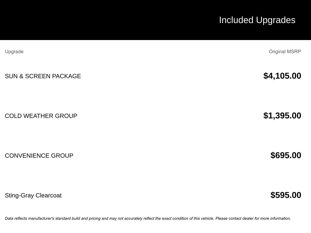 - SUN & SCREEN PACKAGE: Includes 8.4" Touchscreen Display, GPS Navigation, Rear Window Wiper/Washer, Sky 1-Touch Power Top, and more