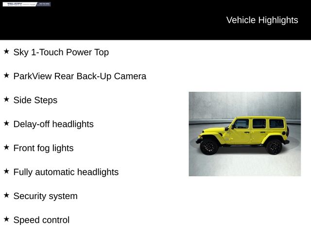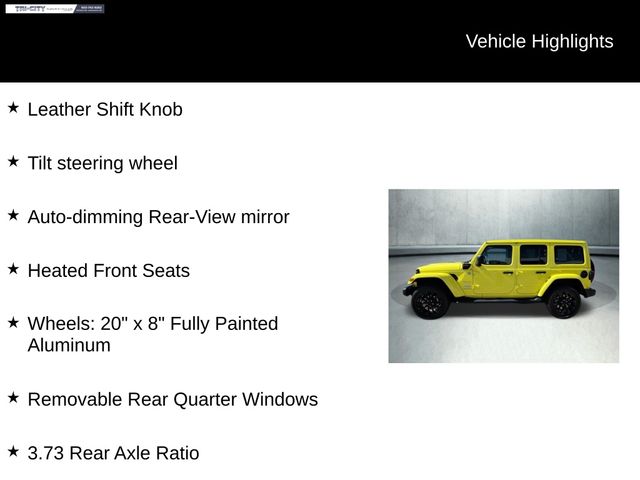 a stunning and capable off-road icon that's ready to elevate your driving experience. This vibrant Yellow Wrangler is more than just a head-turner; it's a true adventure-seeker's dream, packed with innovative features and uncompromising performance.