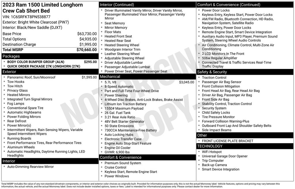 This 2023 Ram 1500 Laramie Longhorn is more than just a vehicle – it's a statement of your refined taste and appreciation for quality. Experience the difference that this exceptional truck can make in your daily driving and weekend adventures.