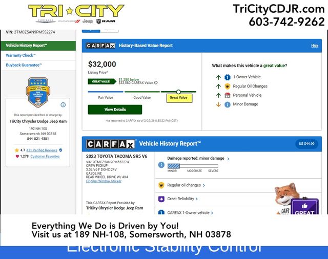 This 2023 Toyota Tacoma SR5 V6 is the perfect blend of rugged capability, modern technology, and refined comfort. Experience the difference for yourself by scheduling a test drive at our dealership today. We're confident you'll be impressed by the quality, performance, and value this exceptional truck has to offer.