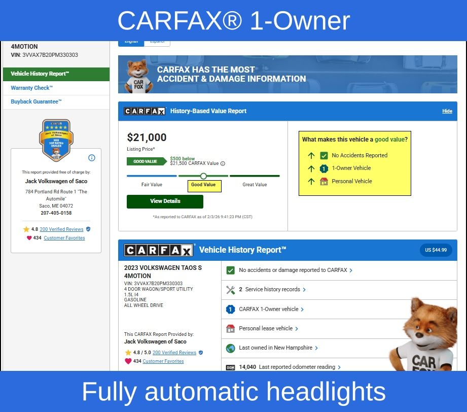 We invite you to visit our showroom and experience the 2023 Volkswagen Taos 1.5T S for yourself. Our knowledgeable sales team is here to answer any questions you may have and help you discover the perfect vehicle to fit your lifestyle. Don't miss the opportunity to make this exceptional SUV your own.