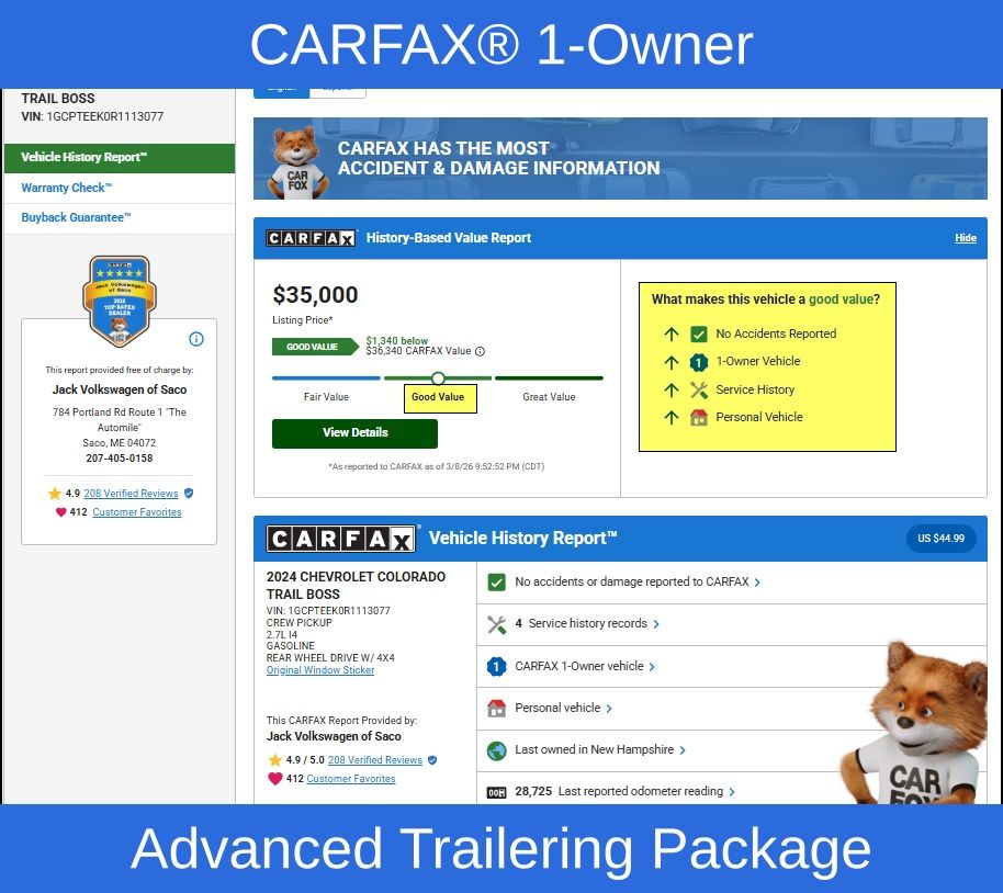 This Colorado Trail Boss is equipped with a host of advanced features that elevate the driving experience. The Chevy Safety Assist suite includes Forward Collision Alert, Lane Keep Assist, and Automatic Emergency Braking, providing an extra layer of protection for you and your passengers. The HD Surround Vision system gives you a 360-degree view around the vehicle, making it easier to navigate tight spaces and maneuver with a trailer.