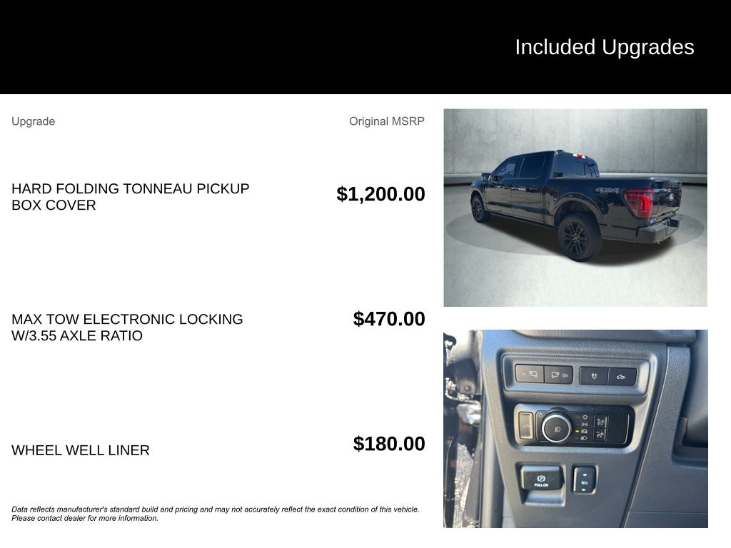 Comfort and convenience are at the forefront of this F-150 Platinum. The unique multi-contour leather bucket seats, heated front and rear seats, and ventilated front seats ensure a luxurious driving experience. The hard folding tonneau cover and max tow electronic locking with 3.55 axle ratio add versatility and capability to handle any task with ease.