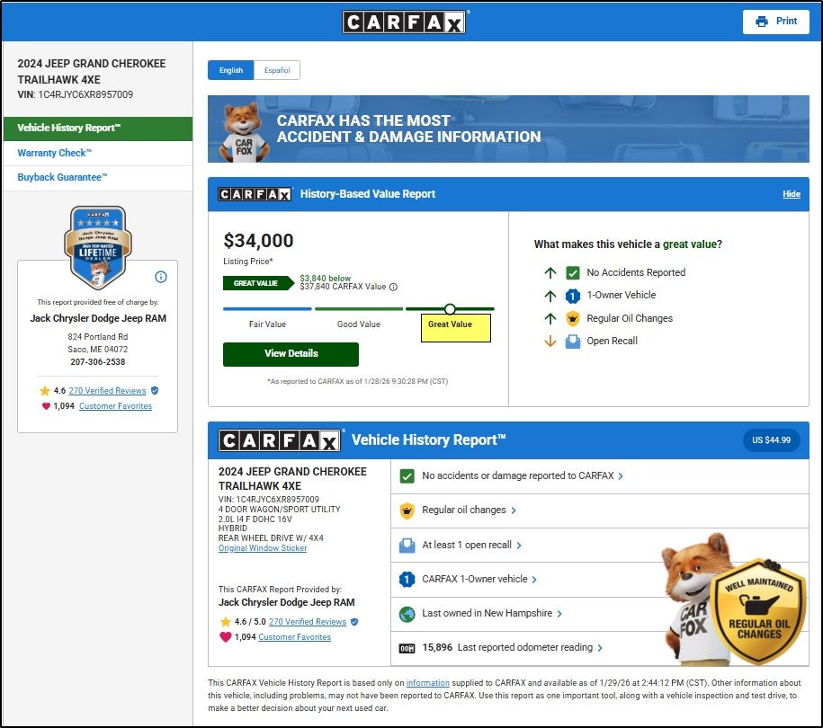 As you explore the countless features of this remarkable Jeep Grand Cherokee Trailhawk 4xe, you'll quickly realize that it's more than just a vehicle – it's a gateway to a life of adventure, comfort, and uncompromising style. Experience the future of SUV performance today by scheduling a test drive at our dealership. We're confident that once you get behind the wheel, you'll be captivated by the sheer brilliance of this exceptional Jeep.